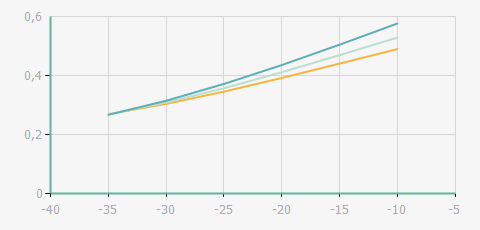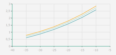蒸發溫度 | 制冷量+/-5% | 能耗+/-5% | 現在能效+/-5% | 氣體流速+/-5% | 能效+/-7% | ||||