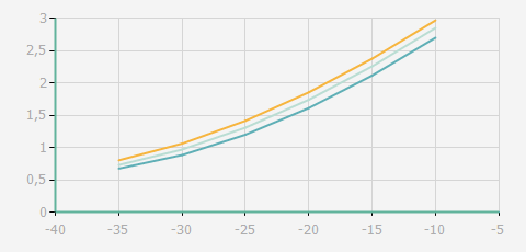 蒸發(fā)溫度 | 制冷量+/-5% | 能耗+/-5% | 現(xiàn)在能效+/-5% | 氣體流速+/-5% | 能效+/-7% | ||||